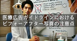 治療前後の写真(ビフォーアフター写真)の掲載は、患者さんを誤認させる恐れがある表現として、医療広告ガイドラインで厳しく規制されています。